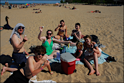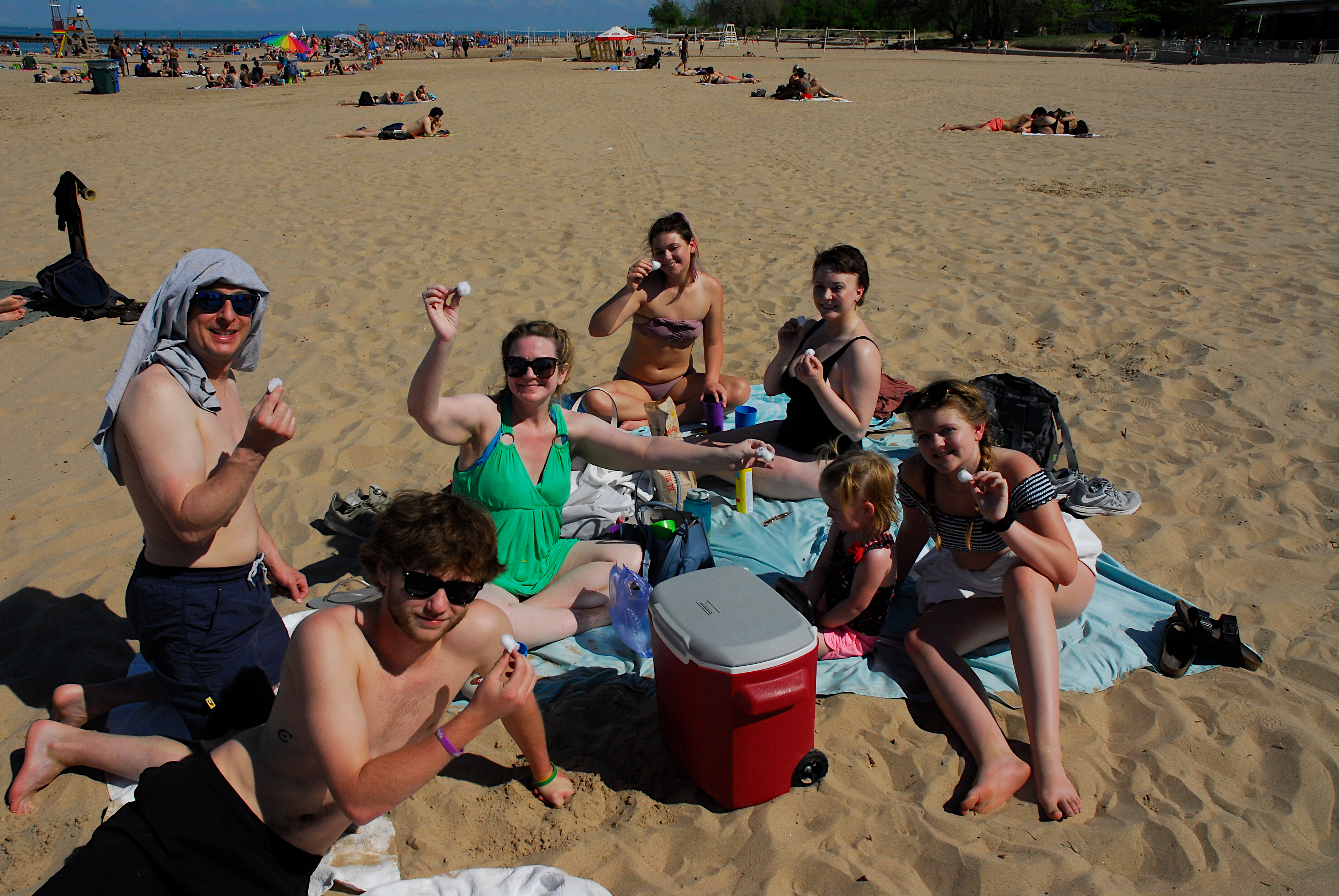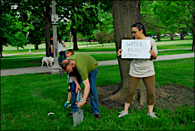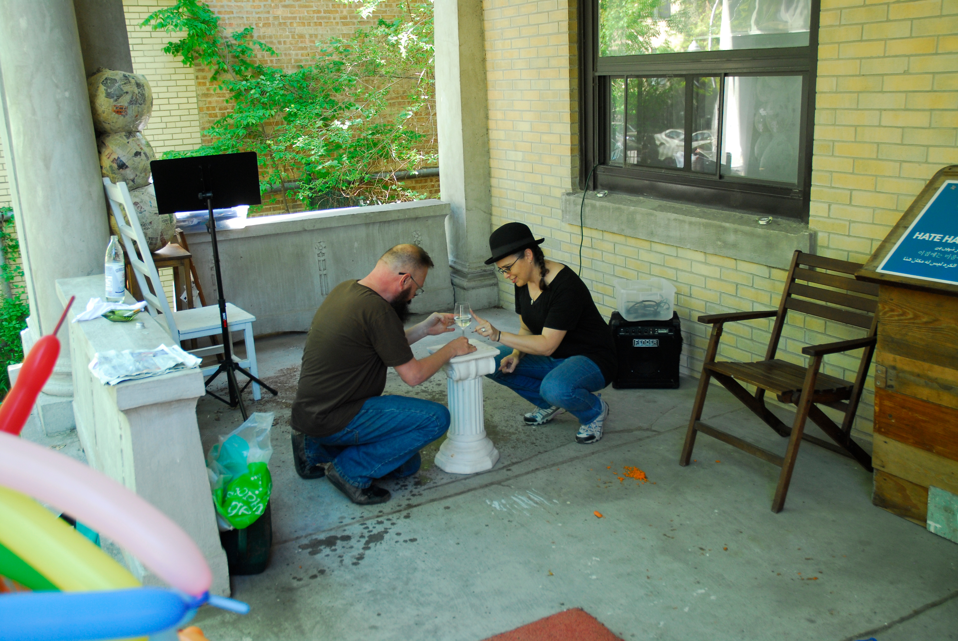 C. Mehrl Bennett & Tristan performing a score by Jonathan Leiter in honor of Geoffrey Hendricks #cloudsmith at Lake Michigan.