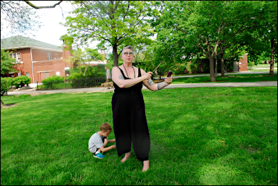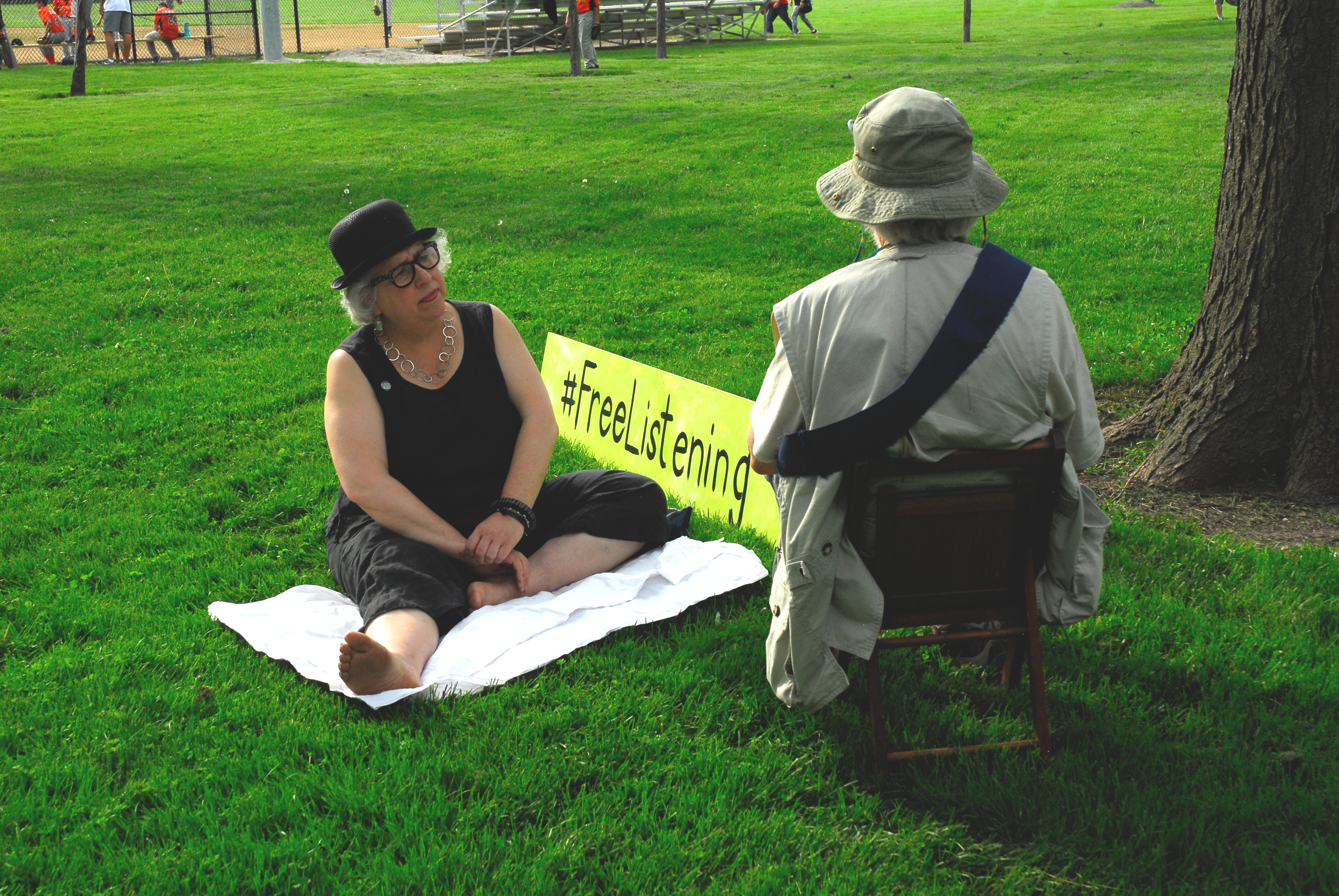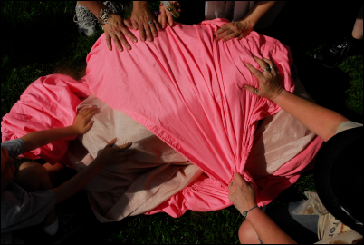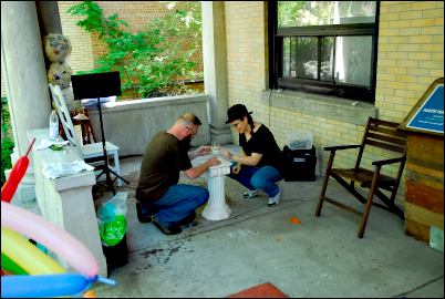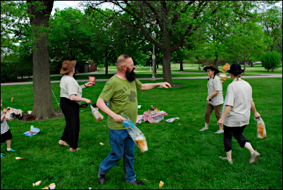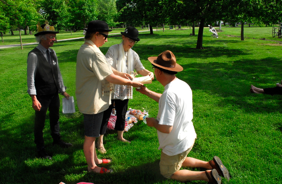 Communicating as bees by Mariana Picart Motuzas. Performed by Fluxsters on and around the front porch.