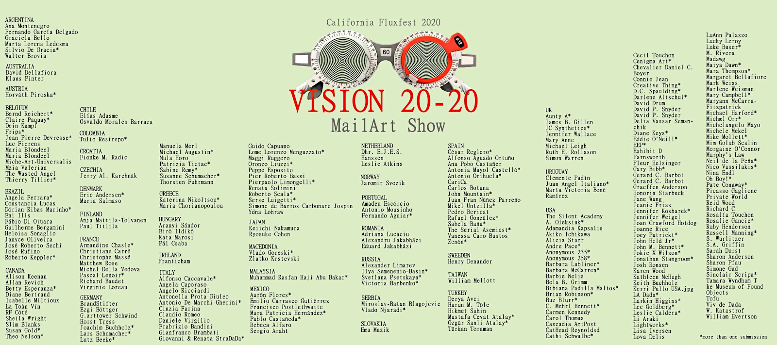 Participants who submitted work for the Vision 20-20 MailArt Show